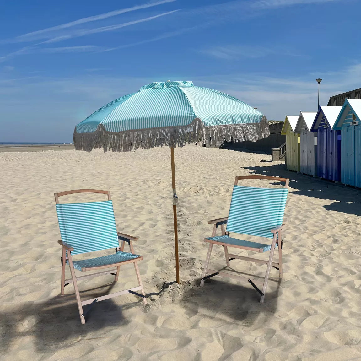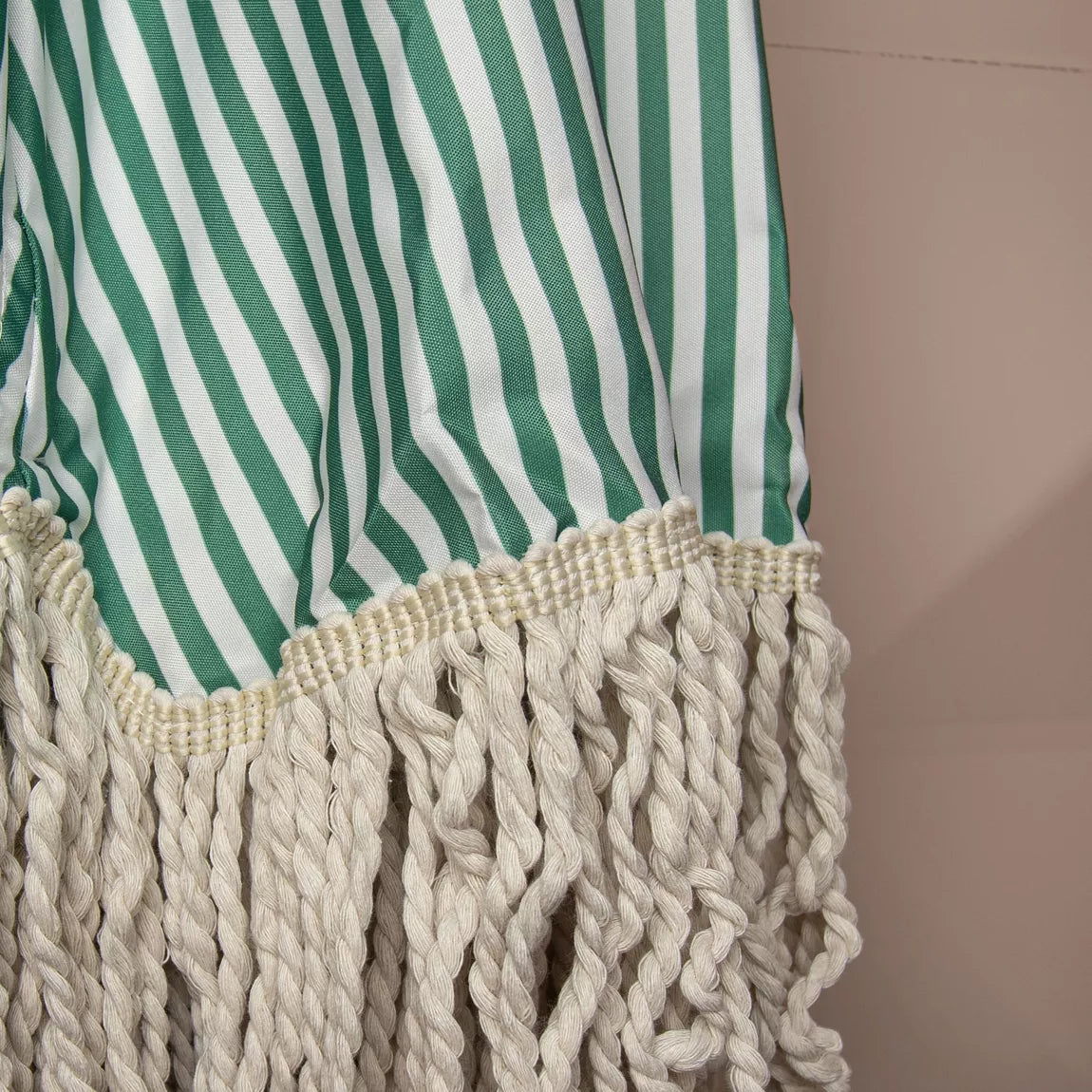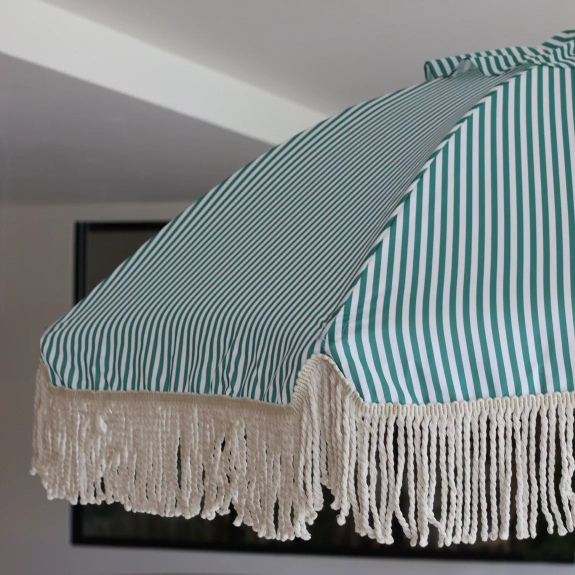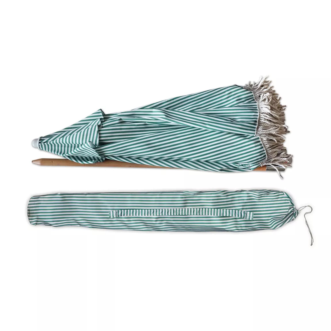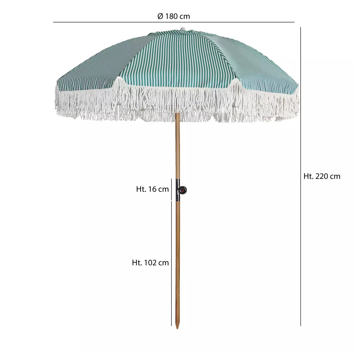 PARASOL EN POLYESTER AVEC RAYURES VERT ET BLANC AVEC FRANGES DIAM 180CM PLAYA