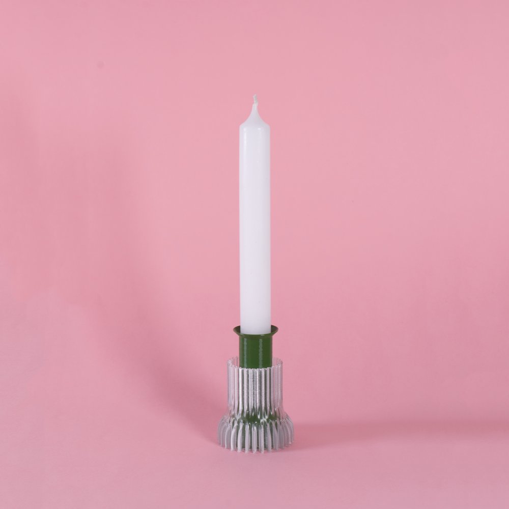 2.21 est un double bougeoir, il peut accueillir aussi bien une bougie chauffe plat qu’une chandelle selon la face sur laquelle il est posé.