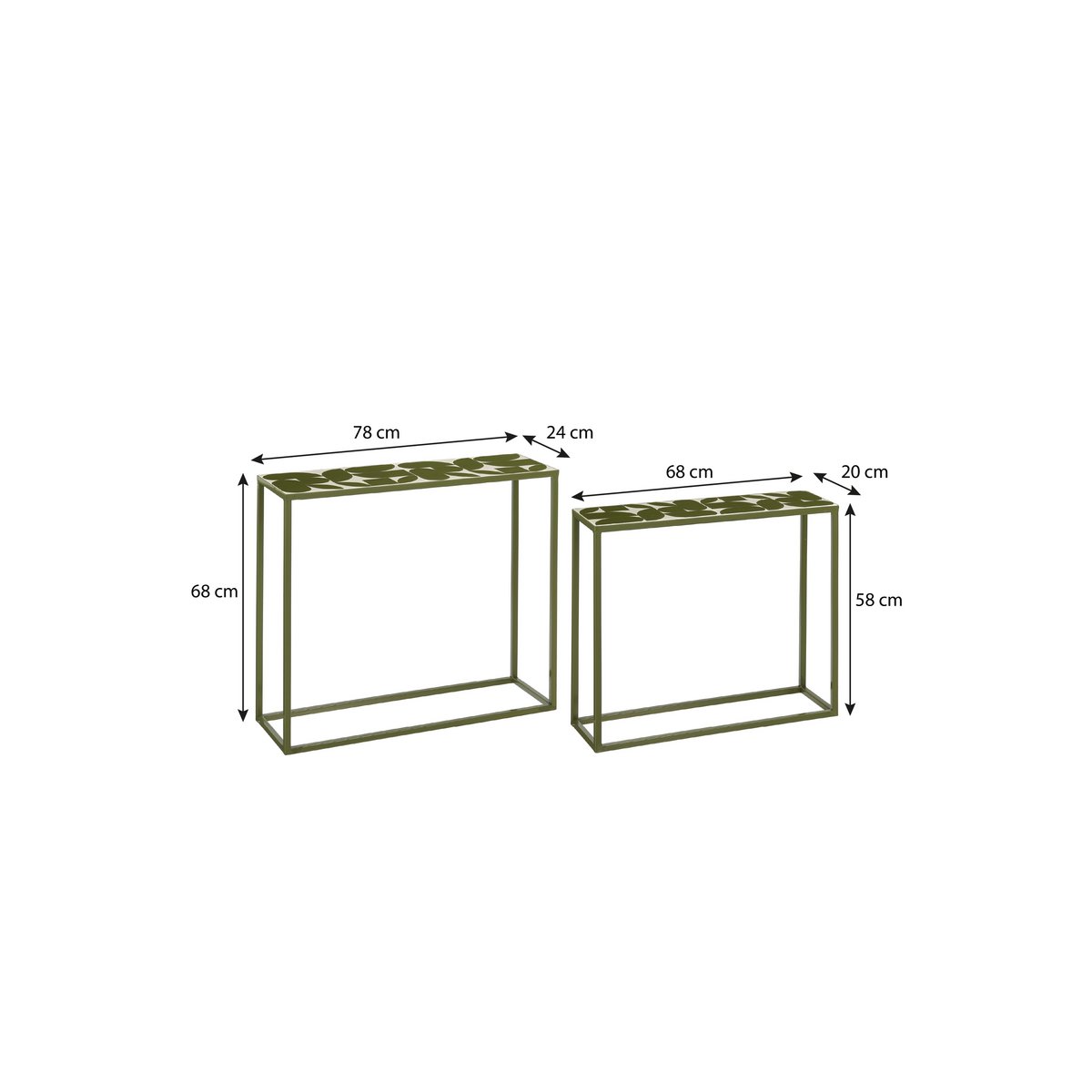 Table d'appoint Bologne à l'extérieur - Ensemble de 2 - L78 x B24 x H68 cm - Métal - vert